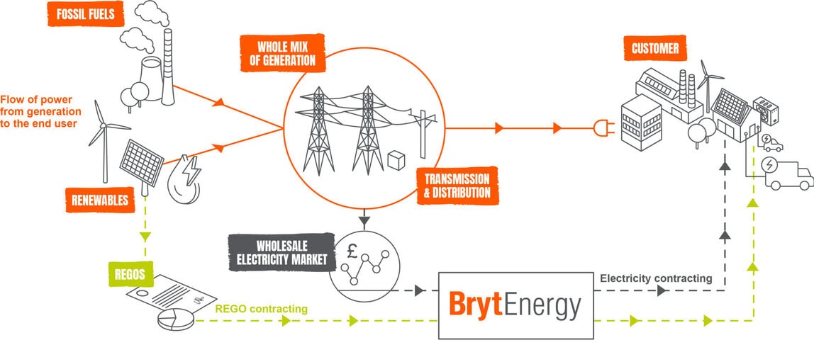 As standard, whilst the REGO certificate cost to you is agreed as part of your contract, these REGOs are purchased “unbundled” through a separate mechanism to your electricity (unless through a Corporate Power Purchase Agreement (CPPA) or sleeving agreement – a mechanism that brings separately sourced REGOs into an electricity supply contract). REGOs purchased by us are solely owned by Bryt Energy and redeemed by us submitting them to the regulator, Ofgem, in July of each compliance year. Ofgem requires Suppliers to do this in accordance with electricity suppliers’ standard licence conditions (SLC), in order to report on their Fuel Mix Disclosure (FMD) annually.